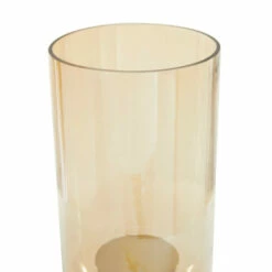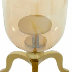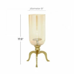 Add a touch of glam with a contemporary flair and accessorize your wall space. Their unique design with warming colors makes them a focal point decor for the living room & the master’s bedroom. This hurricane glass candle holder can accommodate 1 pillar candle. This item comes shipped in 1 carton. Suitable for indoor use only. Made in India. Traditional theme.