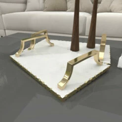 - These decorative trays highlight porcelain white finish with gold outline and accent details
