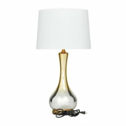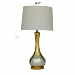 - The gold and silver gradient finish in metallic sheen complements its curved base and brighten white lampshade