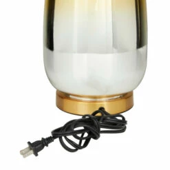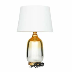 - Gold accent table lamp crafted of robust and long-lasting glass, polyester, iron, and plastic materials