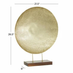 - This gold platted dΓ©cor features a round concave form with a reflective effect