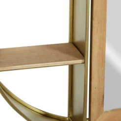 This round wall shelf is made of durable iron, glass mirror, and wood materials