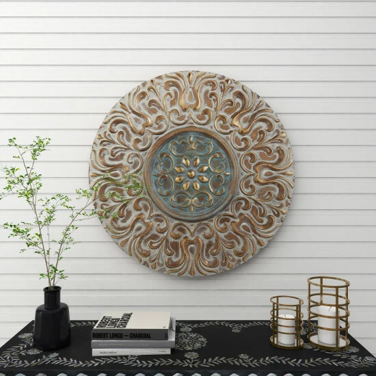 It’s not all the time that big-ticket items match with other big-ticket items, but you can say that this extra large wall decor, which is reminiscent of traditional gongs, is an exception. It can hang on walls, alongside large furniture and accent pieces, via a keyhole backing. The textured iron surface was given a polished metal finish to suit eclectic themes and bold-colored walls. This wall décor measures 34″ wide and 6″ thick.