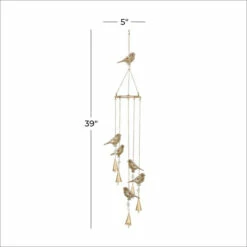 - Designed with six gold bead-studded bird windchime figures and multi-colored glass bead accents