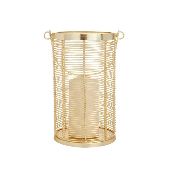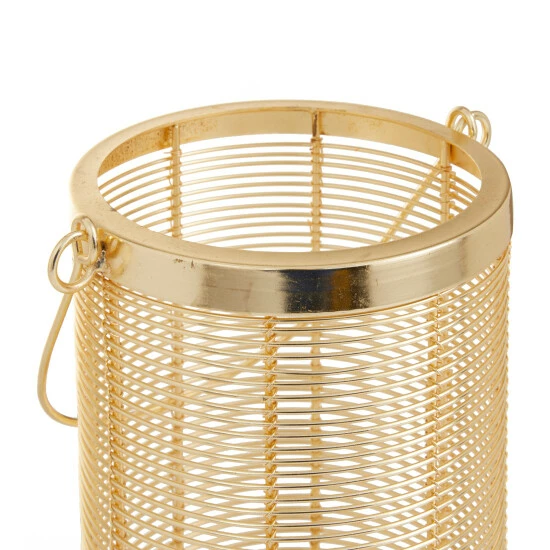 Adorn any of your home spaces with this lantern table decor for a dash of gold and shimmer Delight your guests and make any occasion extra special by adding a lighted or flameless candle to this lantern. A sturdy and long lasting construction that for a long lasting display. This lantern candle holder can hold 1 pillar or votive candle. This item comes shipped in one carton. Easy to hang and transport with handle. Glam design. Suitable for indoor use only. Metal lantern makes a great gift for any occasion.