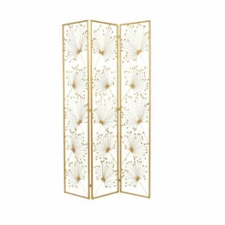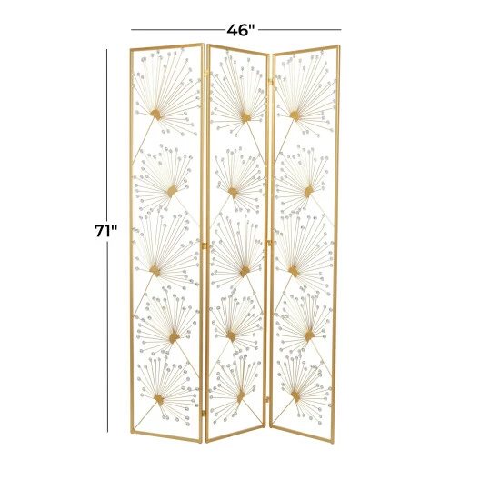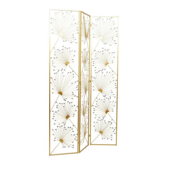 - This charming piece of gold room divider features a 3 panel skeletal figure with captivating dandelion sculptures accentuated by round acrylic gems