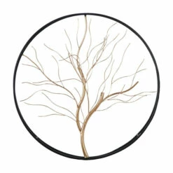 Dazzle your visitors with this gold tree Decor. The small tree, which is leafless and stretches upward, can make a stunning addition to a glam-style space, whether it’s a bedroom, living room, or office. Eyes will naturally be drawn to the gold-colored tree in the middle of the iron Decor. However, the round, black frame helps the center to truly stand out. This item hangs via ring hardware. Suitable for indoor use only. This item comes shipped in one carton.