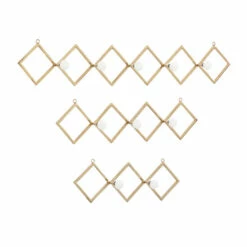 - Each gold hook rack features geometric patterned design with pearl inspired knob hooks