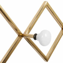 - This geometric wall hook rack highlights a metallic gold finish with pearl white hook knobs