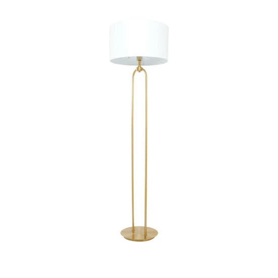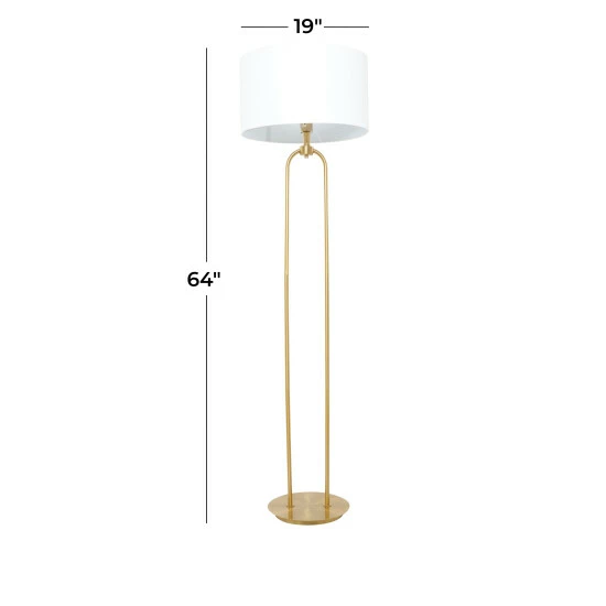 Create a towering lamp display with this beautifully crafted white and gold floor metal lamp and pair it up with other modern minimalistic decor pieces to achieve the perfect glam vibe. Brighten up any room to create a warming atmosphere for you and your guests with this chic floor lamp. Add height and depth into your open floor space with this expertly designed floor lamp. This floor lamp requires a E26/medium bulb (not included). This item comes shipped in one carton. This item features a 66″ plug-in cord . This item is suitable for indoor use. Floor lamp carries a white linen drum shade that measures approximately 19″in diameter. This floor lamp features a cord on/off button switch. Modern style.