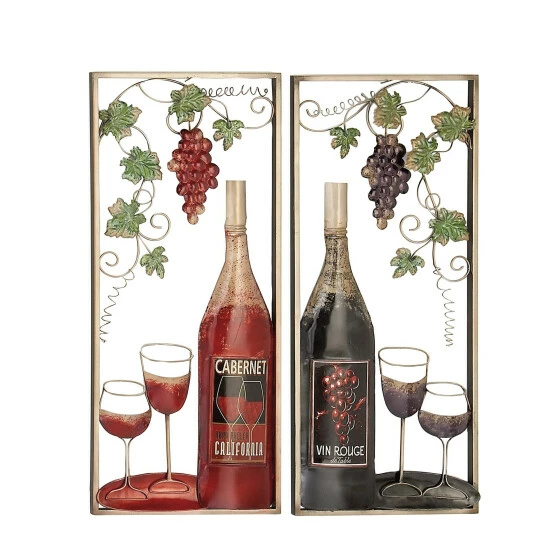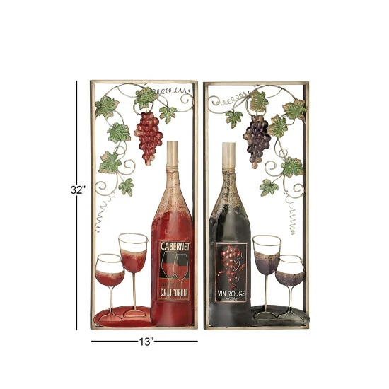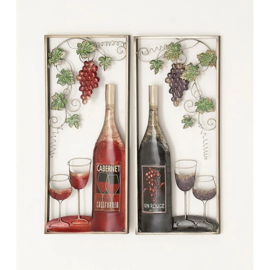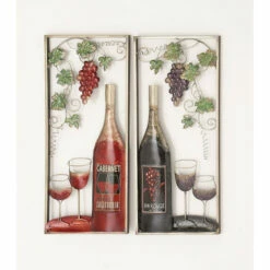 Get this stunning framed wine glass and bottles wall decor from Studio 350 today! Each frame features one wine bottle, two wine-filled stemmed glasses on a table, grapes, leaves and grapevine details. It also comes with a brown-finished iron frame and a rustic, multicolored iron finish. This wonderful framed wine glass and bottles wall decor can be a perfect kitchen display or a lovely anniversary gift. Get yours now!