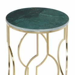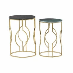 Suitable for a wide array of home dรฉcor styles, especially glam, modern, or contemporary. Use it as an accent piece in the living room, library, bedroom, waiting areas, or hallways of you home. A compact friendly table providing you with additional storage space any where in your home. Designed with stoppers at the base that prevent scratching furniture and table tops, as well as sliding around. This item comes shipped in one carton. Suitable for indoor use only. Marble is a product of nature and no two pieces are exactly alike, it is prone to variations in color and/or patterns in the material that adds to the beauty and charm of the piece. Made in India. Gold accent tables come as a set of 2. Contemporary design. Maximum weight limit is 100 lbs