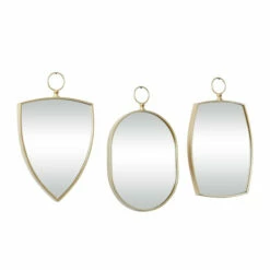 - These stylish wall mirrors feature 3 different geometrical shapes and a hanging hoop design on top