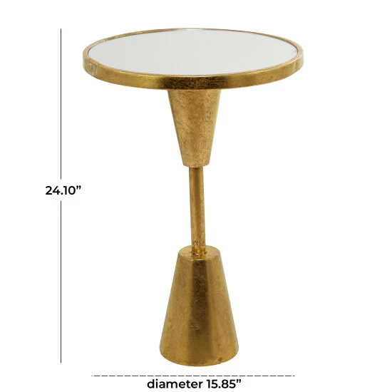 - Iron and mirror materials give this accent table a solid and durable form