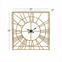 Display this contemporary console table as functional and decorative accent piece in your entryway or hallway. Bring a finishing touch to your home with an inviting appeal with this console table. Useful and elegant, console tables are more than just a place to throw your mail. Designed with black stoppers at the base that prevent sliding around as well as scratching the floor. Requires 1 AA battery. This item comes shipped in one carton. The clock face flaunts a round shape with Roman numerals, black spade hands, and cut-out design. This clock has a non-ticking function. Suitable for indoor use only. Contemporary Setting. Maximum weight limit is 100 lbs.
