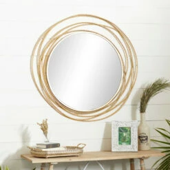 Add a touch of gold luxury in your boho inspired living space with this boho style round gold metal abstract frame wall mirror because being laid-back, does not mean you have to sacrifice elegance. This metal wall mirror showcases an elegant gold metal finish on its outer abstract designed round frame. The polished gold finish is also complemented by the highly reflective glass mirror of this piece. This would turn your boho inspired living space into an instant carefree, yet luxurious haven as well. This item comes shipped in one carton. Easy-to-hang with its sawtooth metal hardware at the back. Suitable for indoor use only. Contemporary design.
