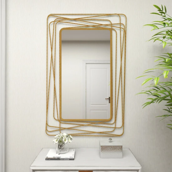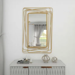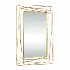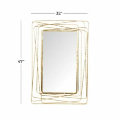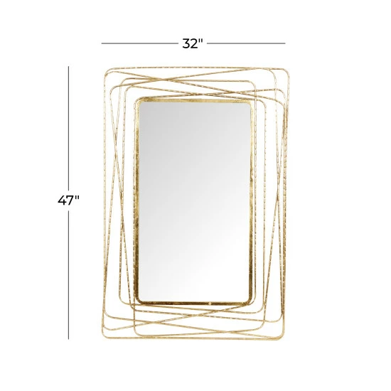Add a touch of gold luxury in your boho inspired living space with this boho style rectangular gold metal wall mirror because being laid-back, does not mean you have to sacrifice elegance. This metal wall mirror showcases a stunning gold rectangular frame bordered with more rectangular frames in an abstract manner. The polished gold finish is also complemented by the highly reflective glass mirror at the center of this piece. This would turn your boho inspired living space into an instant carefree, yet luxurious haven as well. This item comes shipped in one carton. Easy-to-hang with its sawtooth metal hardware at the back. Suitable for indoor use only. Contemporary design.