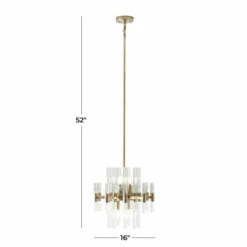 Bring elegance and glamour to your interior aesthetics with this chandelier for an extravagant lighting in your bedroom or living room space. Maximize your ceiling space to add depth and dimensions in your home with this gorgeous chandelier. Beautifully designed and well crafted chandelier features eye catching structure for a mesmerizing focal point any where in your home. This chandelier require E12/candelabra bulbs. Item comes shipped in one carton. Furnished with suspended eyelet connected to chandelier chain and pole for easy hanging. Rod length measures approximately 60″. Suitable for indoor use only. Glam design. This chandelier requires hard wiring.