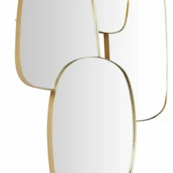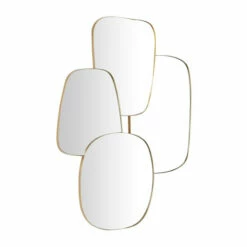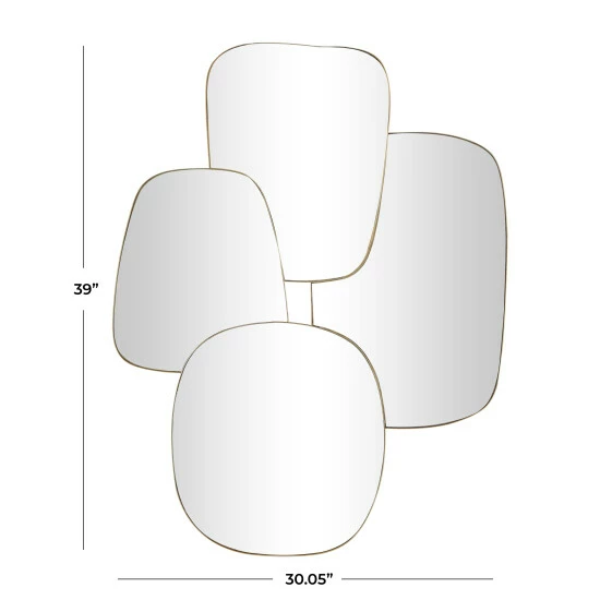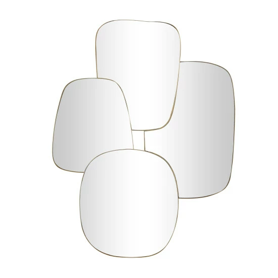 - Glam wall mirror featuring an elegant overlapping design with its geometric reflective glass panels and gold thin metal frames
