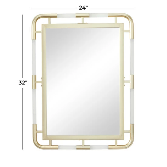 - The large gold wall mirror showcases a rectangular mirror styled with an alternating iron and acrylic geometric body frame