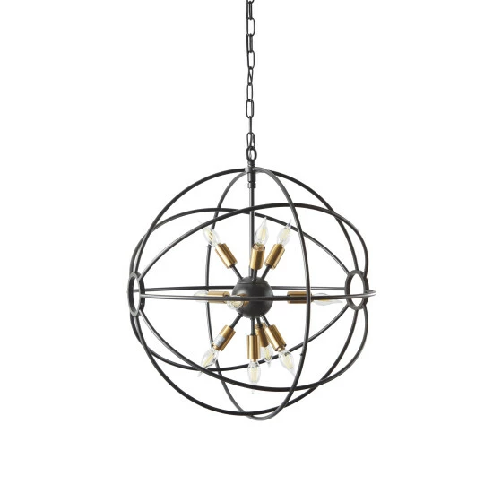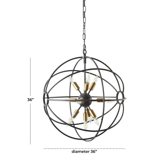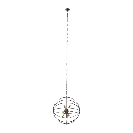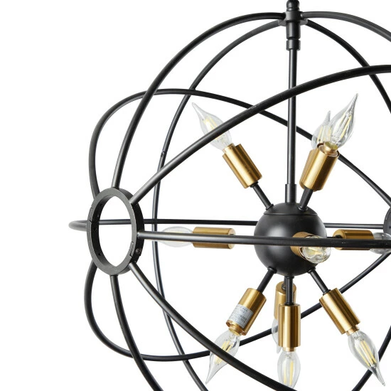 - A marriage of rounded and linear details come together with this chandelier that flaunts sputnik lighting inside a rounded spherical frame