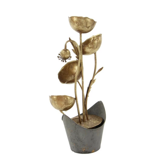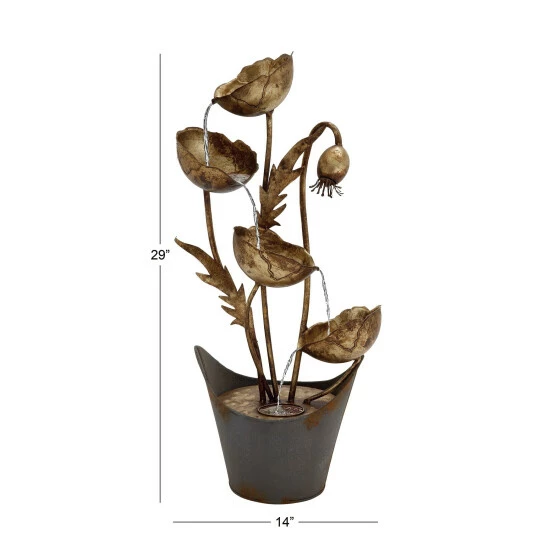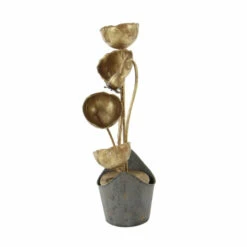 - It has 4 metal flowers that pour water onto each other. Such design concept allows water to cascade smoothly to mimic the sound of a flowing stream