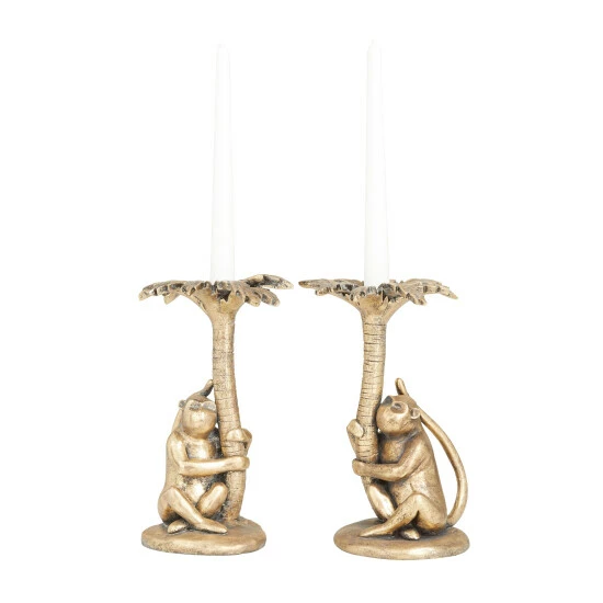 - These unique candle holders feature a pair of monkeys facing each other and hugging a palm tree