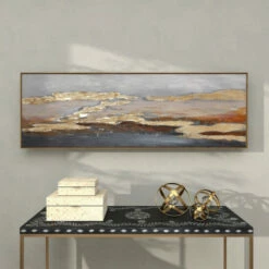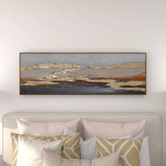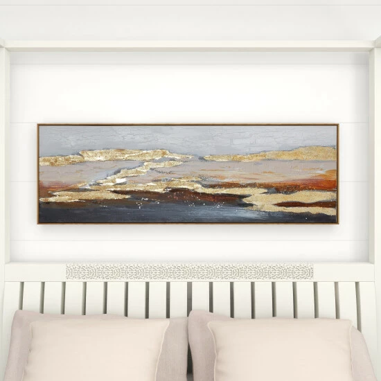 Elevate the beauty of your indoor space with this aesthetic landscape art decor. This framed artwork features a hand painted landscape in rich gold, beige, red and brown hues. The artwork has a Chinese fir wood frame in a natural finish. Stylish yet lightweight, easily hang on walls of living rooms and bedrooms to elevate the charm and appeal of modern and contemporary style interiors. Easy to hang features metal sawtooth backing. Suitable for indoor use only. This item comes shipped in one carton.