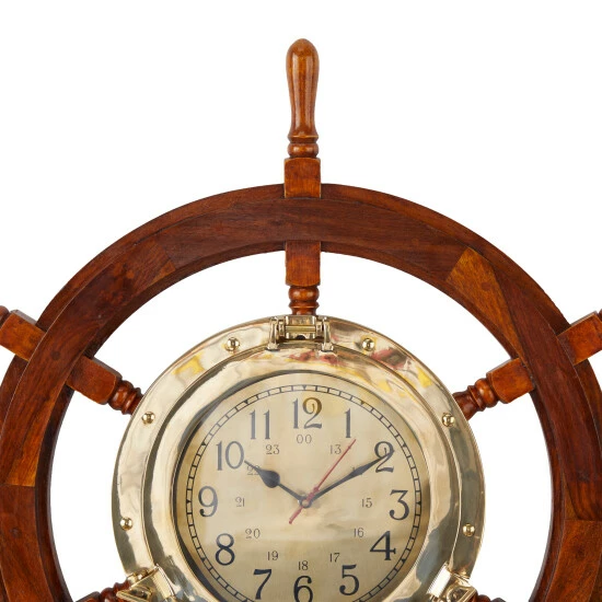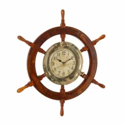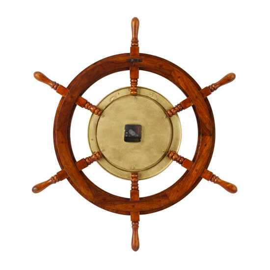 - A brass clock flaunts the center of this ship wheel with a striking combination of brass and wood design