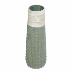 - This large decorative vase features stylish color-blocking with a matte white upper and a light sage green base