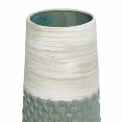 Use as a flower holder on your coffee, console, and kitchen tables, or as a decorative piece on a book shelf or office shelf. Displayed in your dining or living room, entryways or hallways, this vase is sure to bring charm and joy to any space. Due to the handmade nature of this item, no two will be alike, there will be slight differences in shape, size, and color. This charming contemporary vase will add texture and subtle color to entryway tables and mantels. This item ships in one carton. Due to the handmade nature of this item, no two will be alike, there will be slight differences in shape, size, and color. Suitable for indoor use only. Cylinder vase with 5″ rim opening. Contemporary design.