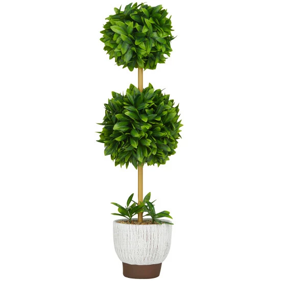 - Green plant artificial decor features round-shaped bushes and a pot filled with pebbles for a realistic and easy maintained greenery addition to your home