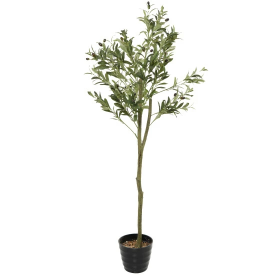 Bring life and color to your living space with no keep up effort with this artificial tree. Add some greenery to your decor with no keep up effort with these artificial foliage. Bring a piece of nature inside your endearing living spaces as you decorate your spacious corners with this artificial olive tree and update its pot with a wicker-style potted basket for the ultimate natural vibe. This item ships in 1 carton. Green artificial olive tree is made of PVC plastic with a round-shaped melamine pot . Suitable for indoor use only. Contemporary style.