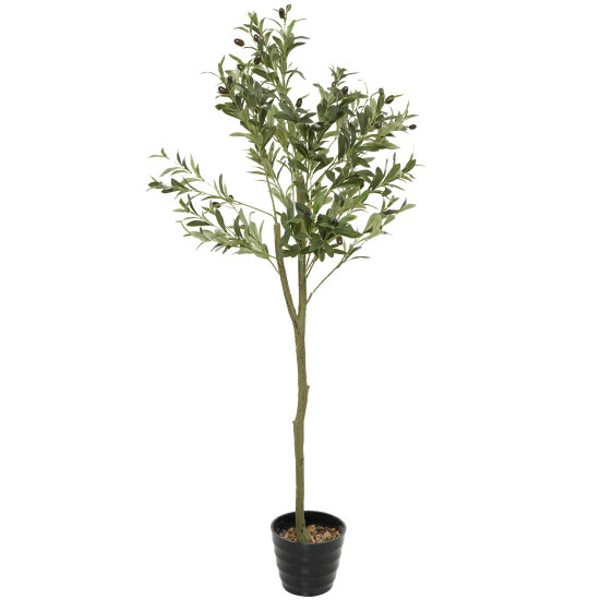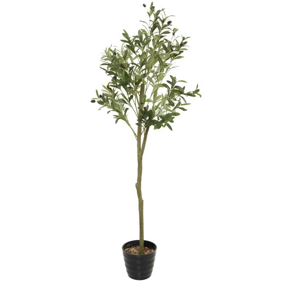 - Our faux potted olive tree showcases a tall and blooming olive tree figure with realistic body details and a rounded pot with natural stone fillers