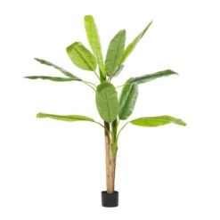 This artificial potted plant adds a naturalistic greenery to any interior. Make a statement with this unique décor on mantle, console table or in any living space. Add some greenery to your décor with no keep up effort with these artificial foliage. This item comes shipped in one carton. This artificial banana leaves tree decor comes in a plastic planter with a 4. 5″ depth. Suitable for indoor use only. Traditional theme.