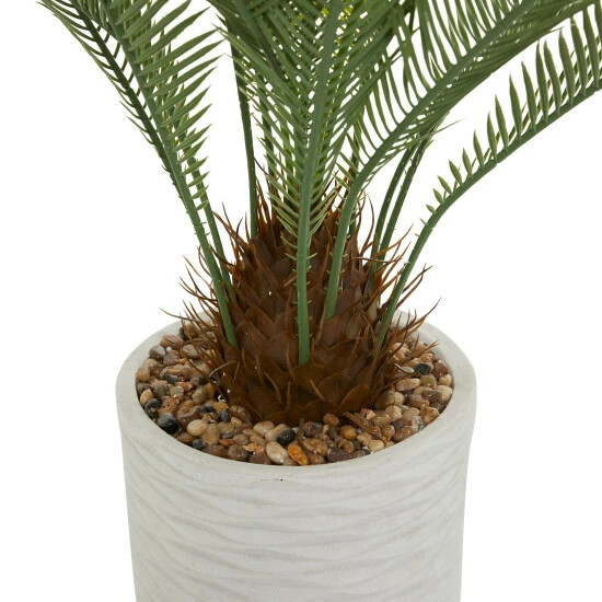 Modern style inspired by a minimalistic design with clean lines and angular structures. Freshen up the mood in any of your home space with this faux potted palm tree table decor.