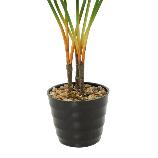 - An ebony black planter highlights the lush green shade of this artificial indoor plant
