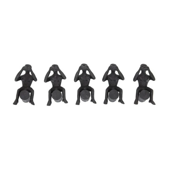 Liven up any room in your home with this set of unique wall sculptures from Studio 350. Crafted from high-quality and solid aluminum material, it features five identical man figures sitting on logs while holding binoculars. These pieces come in a dark gray finishing, making them easy to blend with other home decor and furniture. Purchase this one-of-a-kind set today at a price that will surely suit your budget.