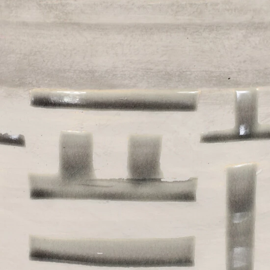 - Round pots slightly tapered under the mouths, each handmade from terracotta finished with matte beige base glaze and soft black glossy glazed shapes