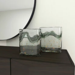 Who doesn’t love chocolate? Say it loud with this message wall décor, the message, “Homemade daily with Love”, ” Come & relax, stay awhile”, “Hot Chocolate with extra marshmallows”, on a black background with white lettering. Appreciate their design best against solid-colored backgrounds in contemporary settings. They make great unique décor on mantle, console table or in any living space. Each set comes with 2 vases. Contemporary design.