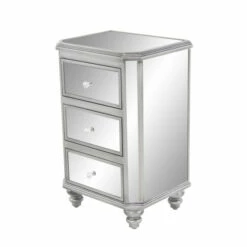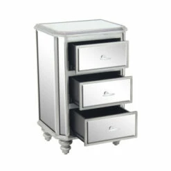 - Mirror side chest made of wood frame with mirror inlay exterior