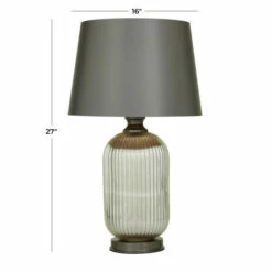 Whether you place it on top of a corner table or console table, this gray glass accent lamp can bring a different light and change the atmosphere in your home. This eye catching lamp makes a charming and chic addition to your surface space and beautifully illuminate its surrounding area. Bring a finishing touch to your home with an inviting appeal with this accent table lamp. Designed with black stopper at the base that prevent sliding around as well as scratching any surface. Comes with 1 socket for medium-sized E26 bulb. Bulb included. Item ships in 1 carton. Cord length measures approximately 60″. Suitable for indoor use only. An accent piece featuring a gray polyester drum-shaped shade. Comes with an on/off toggle switch. Modern Inspired.