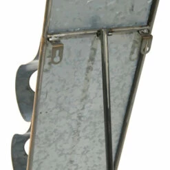 - A galvanized metal look, riveted accents, and a PU leather label create the farmhouse feel