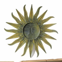 Elevate your decoration and accessorize your indoor or outdoor space with the help of this round gray and gold metal sun wall art. This wall decoration is bound to impress your guests with its marvelous design and uniqueness—a stunning accent piece featuring gray and gold finishes; it is designed with facial details in the center and alternating curved and straight rays. This wall accent suits eclectic themed spaces that crave for unique and stylish design. Let it provide a sense of satisfaction by hanging this amazing piece anywhere inside or outside your home. There are keyholes on the back for easy hanging. Suitable for indoor and outdoor use. This item comes shipped in one carton.