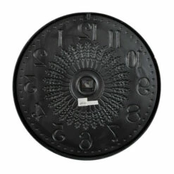 Design meets functionality in this sleek-looking and intricately designed iron-made wall clock. Its white and grey color scheme and embossed feather details at the center are guaranteed to stand out in contemporary, farmhouse, and cottage-themed study rooms, offices, living rooms, bedrooms, and home libraries. Iron makes up the 28″L X 3″W X 28″H dimensions of this metal wall clock. It hangs via a built-in keyhole backing and runs on one AA battery. The clock face features a black Arabic numeral and clock hands. The clock mechanism runs silent. Suitable for indoor use only. This item comes shipped in one carton.