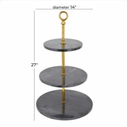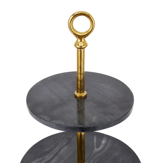 - This 3 tier gold cake stand showcases a splendidly round tray in a solid marble structure and a gold metal stand with an easy-carry hoop handle on top