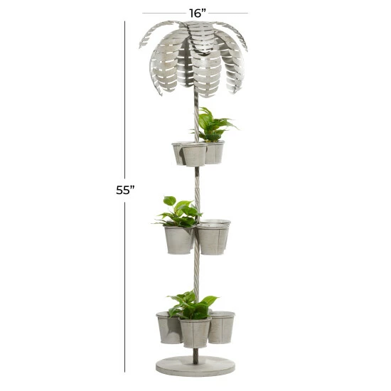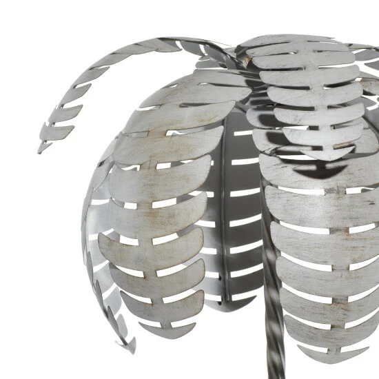- This metallic decor is shaped like a palm tree, complete with segmented leaves that drape from the head