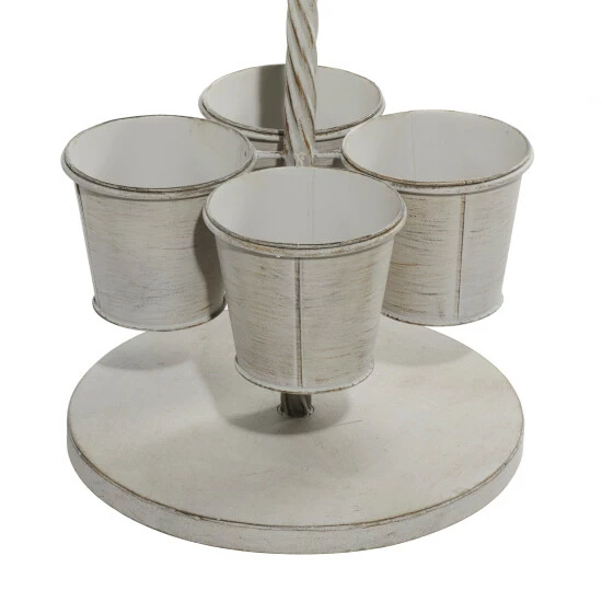 - Three tiers of pots hang off the twisted metal pole Each pot will hold a single plant