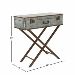 - This metal suitcase table highlights a light and sturdy construction of solid iron
