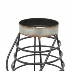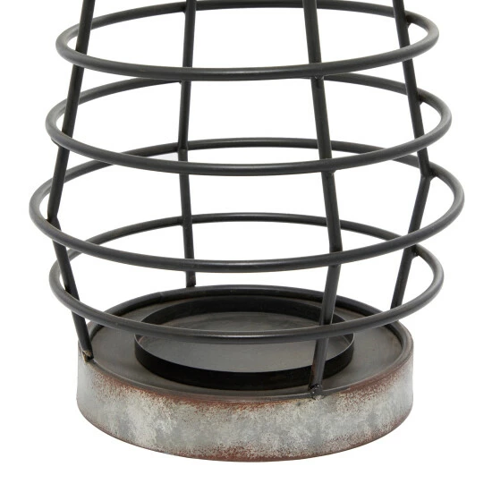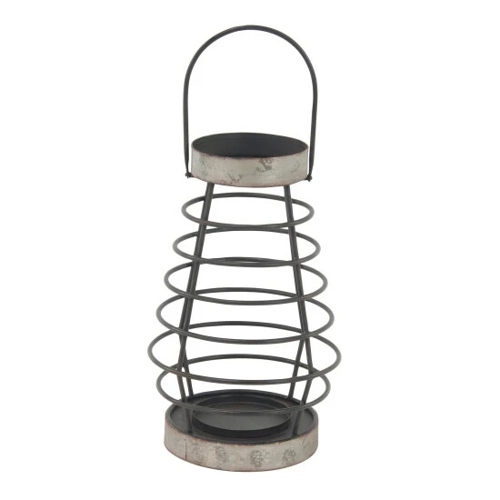 Infuse your space in the romantic candlelight glow that emits from this stylish metallic candle lantern. This piece is a great addition to any farmhouse or industrial-inspired interior and will surely complement your existing home decors. With its pear-shaped body with round open top and circular flat base, distressed gray finishing, and convenient arched handle, this candle holder works beautifully on any mantel or accent table. Made of iron, this home decor provides solid construction and is perfect for creating an elegant adornment or centerpiece for a festive celebration. Delight your guests and make any occasion extra special by adding a lighted candle to this impressive distressed gray decorative lantern. Designed with black rubber stoppers at the base that prevent scratching furniture and table tops, as well as sliding around. This item ships in 1 carton. Suitable for indoor use only. Farmhouse-themed style. Lantern candle holder which can hold 1 pillar candle.